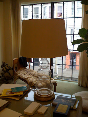 I am finally back in the swing of things with work and my social life and went to a great party tonight at the interior design offices of Fisher-Weisman. The space is south of Market on Minna Street- and was an auto body shop which the pair bought 9 years ago and remodeled the space creating two levels. The polished look with the rustic wood beamed ceilings painted white are a perfect space were you can just feel the creativtiy! They have 2 adorable poodles (Rock and Billy) as well. You may have seen some of the fabulous one of a kind work that they do with shells and coral and how they encrust furniture and lighting. Andrew Fisher (who worked with Tony Duquette) has most recently launched a wonderful line of furniture for sale at Gumps in San Francisco (sadly I missed the party as I was in NY). The party tonight was thrown by Fisher- Weisman to show off the work of decorative painter Shirley von Karl Robinson who does wonderful finishes for interior projects.